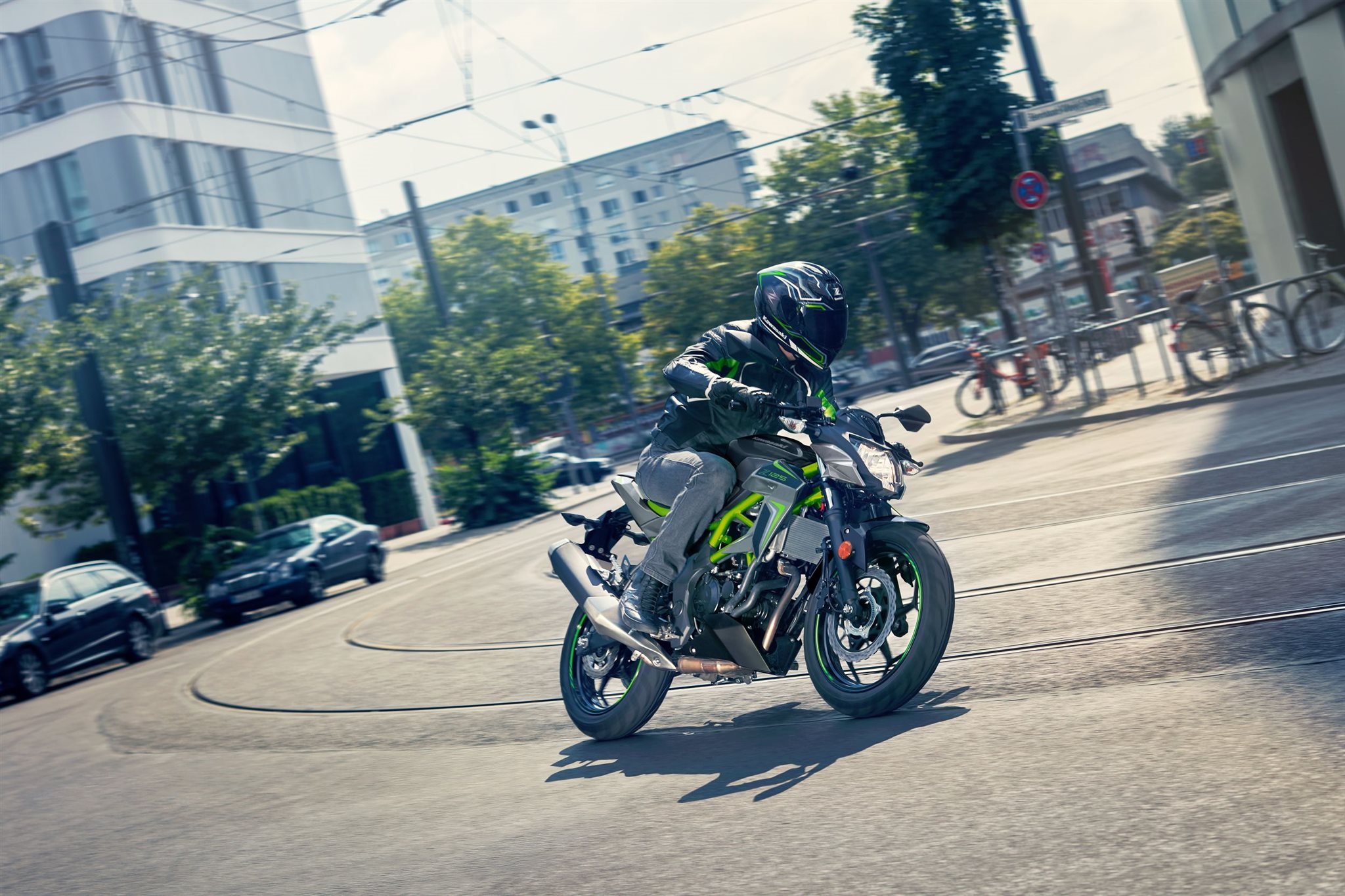 Mit Kawasakis einzigartiger Sugomi-Designphilosophie, die sofort ins Auge fällt, präsentiert sich das kleinste Mitglied der Z-Familie. Auffallen und ein starkes Naked-Bike-Statement setzen genau dafür ist sie da. Der freiliegende Gitterrohrrahmen verbindet sich mit der minimalistischen, aggressiven Z-Verkleidung und lädt zu sportlicher Fahrweise ein. Der 15-PS-Motor (11 kW) ist sowohl einsteigerfreundlich als auch so sportlich, wie man es von Kawasaki erwartet. Die Z125 kann mit dem A1-Fuhrerschein oder mit dem Autofuhrerschein ab 25 Jahren (B196) gefahren werden und bietet ideale Voraussetzungen fur Führerschein-Neulinge.